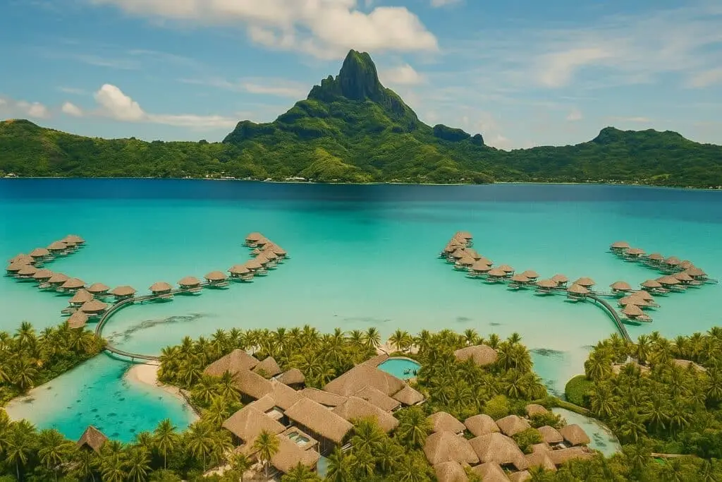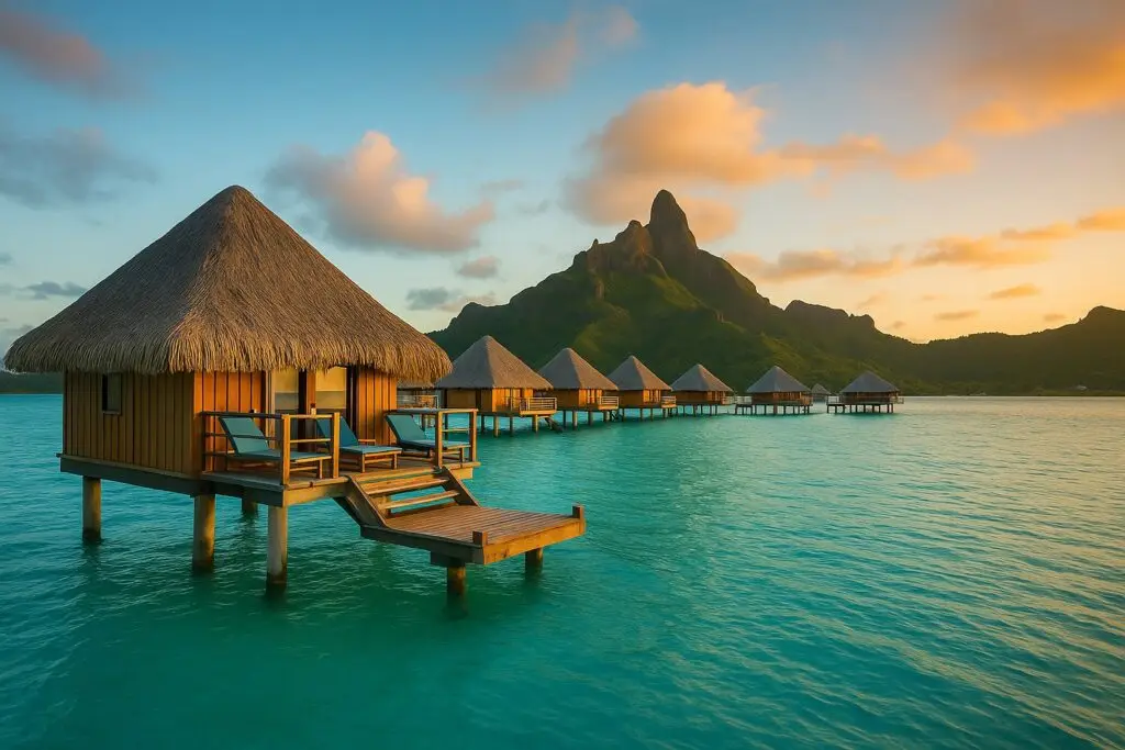 When you picture paradise, chances are you’re imagining Bora Bora. These overwater villas with glass floors, direct sea access, and private jacuzzis are the epitome of luxury. Wake up to turquoise lagoons and end your day with pink sunsets over Mount Otemanu.